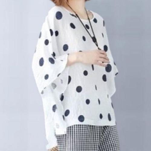 [엄지척]여성 여름 땡땡이 냉감 인견 루즈핏 반팔 티셔츠_19609576_667501