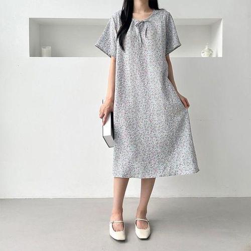 [리빌모아]랜덤 여자 인견 라운드 리본 반팔 원피스 SDW-OPH-SSD1002077