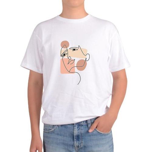 [셀러허브_여성트랜드패션]오트밀 남녀공용 반팔티 여인 드로잉 미인도