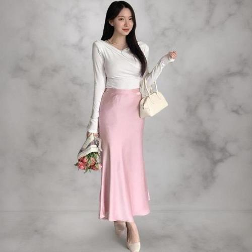 [다잇템_패션]여성 베이직 롱 새틴 인어공주 뒷밴드 스커트