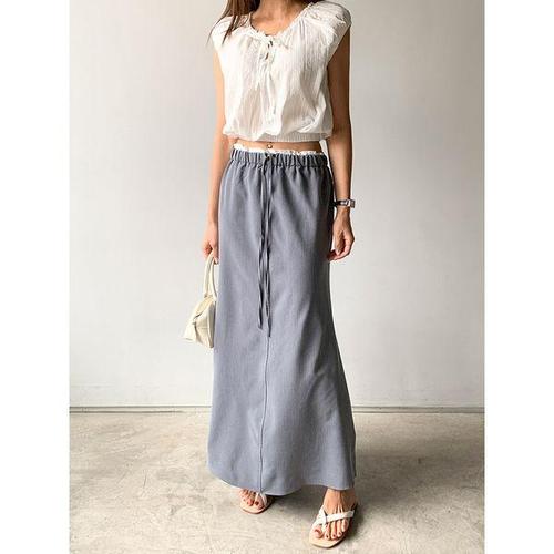 샵앤) 국산 밴딩 인어라인 플리츠 맥시 롱스커트 STJ-WSK-4867-아이보리