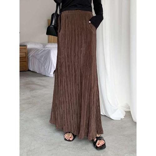 [샵앤]국산 밴딩 인어라인 플리츠 롱스커트 STJ-WSK-4867-브라운