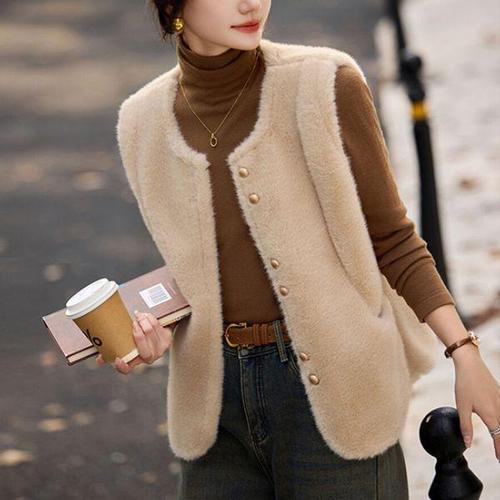 여자 인조퍼 포근 조끼 하이넥 캡소매 베스트