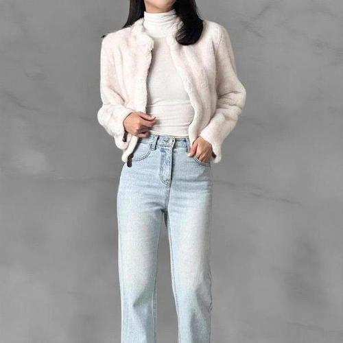 [제이0][제이0]인조 밍크 퍼 물결 후크 긴팔 자켓 점퍼