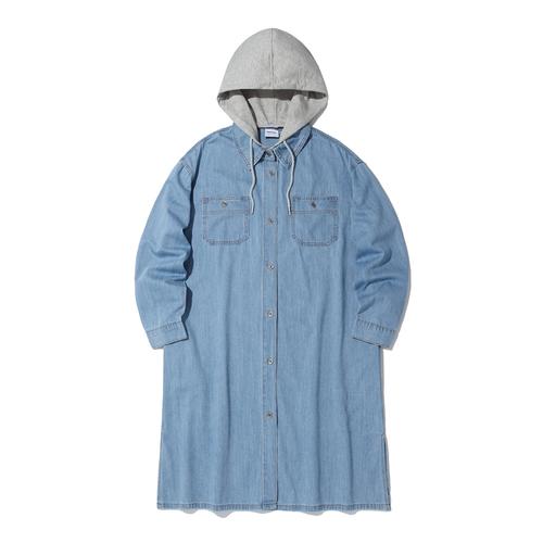 [인터크루]우먼스 라이트 인디고 스톤 워싱 롱기장 데님 셔츠 L블루 ITA1YE52ALB