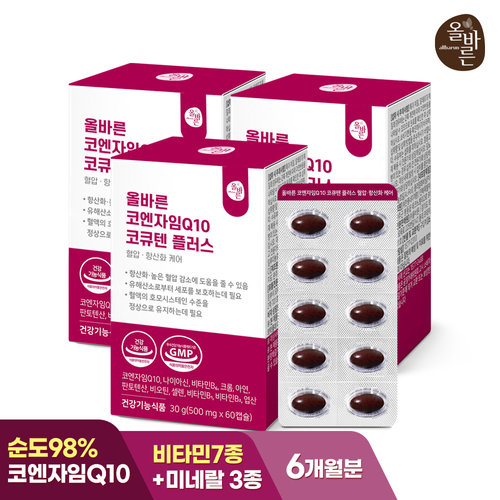 [총 6개월분] 올바른 코엔자임Q10 코큐텐 플러스 혈압 항산화 케어 60캡슐 3박스