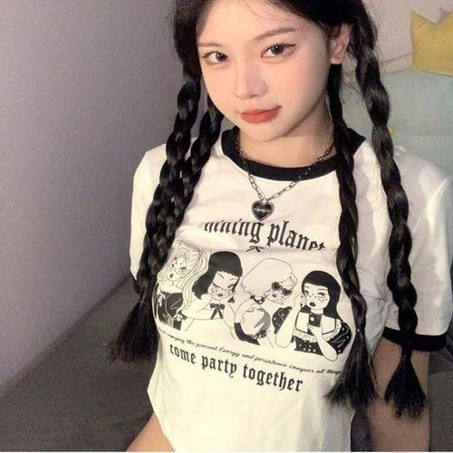 [셀러허브_여성트랜드패션]ONM 여성 빈티지 레트로 일러스트 감성 여름 반팔티셔