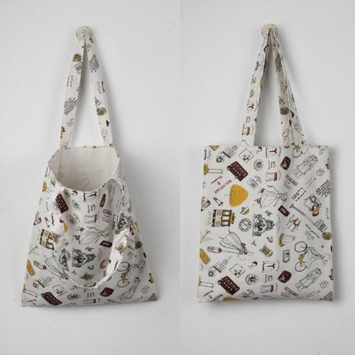 지퍼형 캔버스 에코백 일러스트 토트 숄더백 데일리 시장 쇼핑 학생용