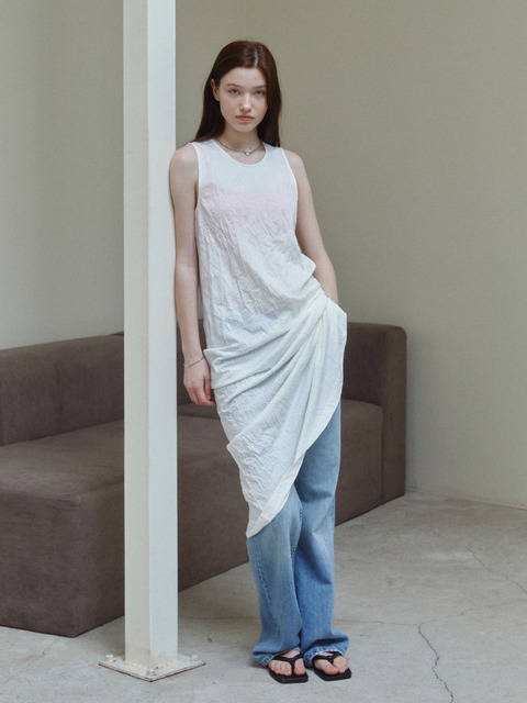 [일로일] 크링클 슬리브리스 드레스_아이보리