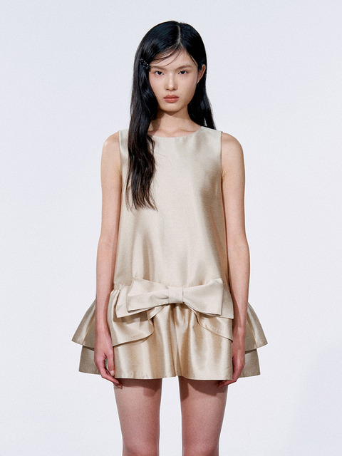 [카일로] 플레어드 리본 드레스 골드 베이지