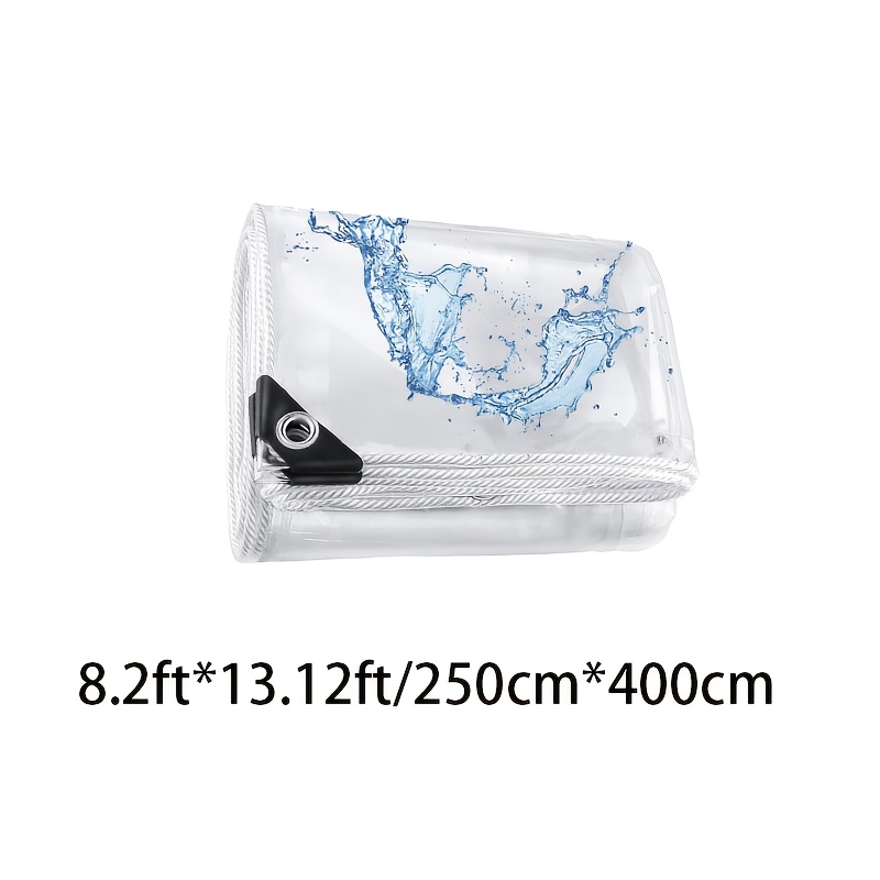 TEMU A 118인치 x 78.8인치 투명 방수 타프, 아일렛 및 후크 장착, 내구성이 뛰어나 물과 눈에 강함 - 파티오, 현관, 발코니, 온실 및 차량 커버 등 다양한 야외 용도로 적합