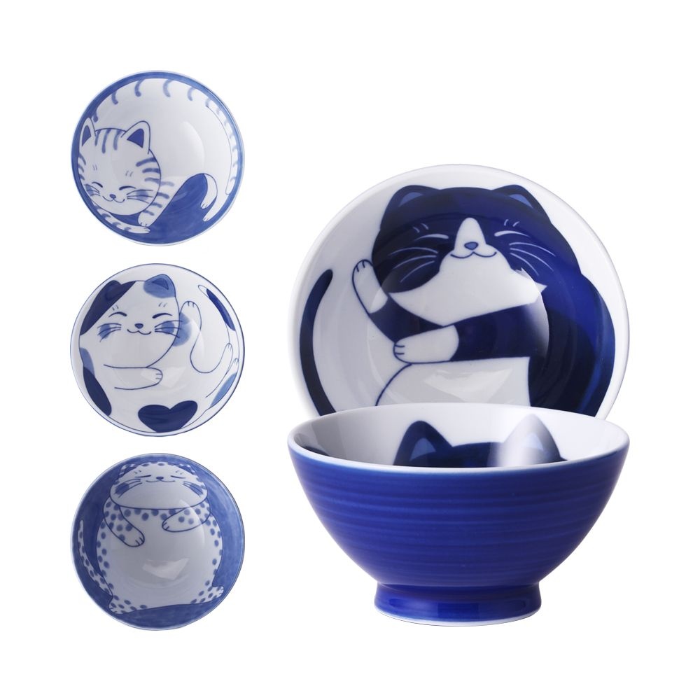 일본 도자기 마네키네코 고양이 공기 밥그릇 11.5cm