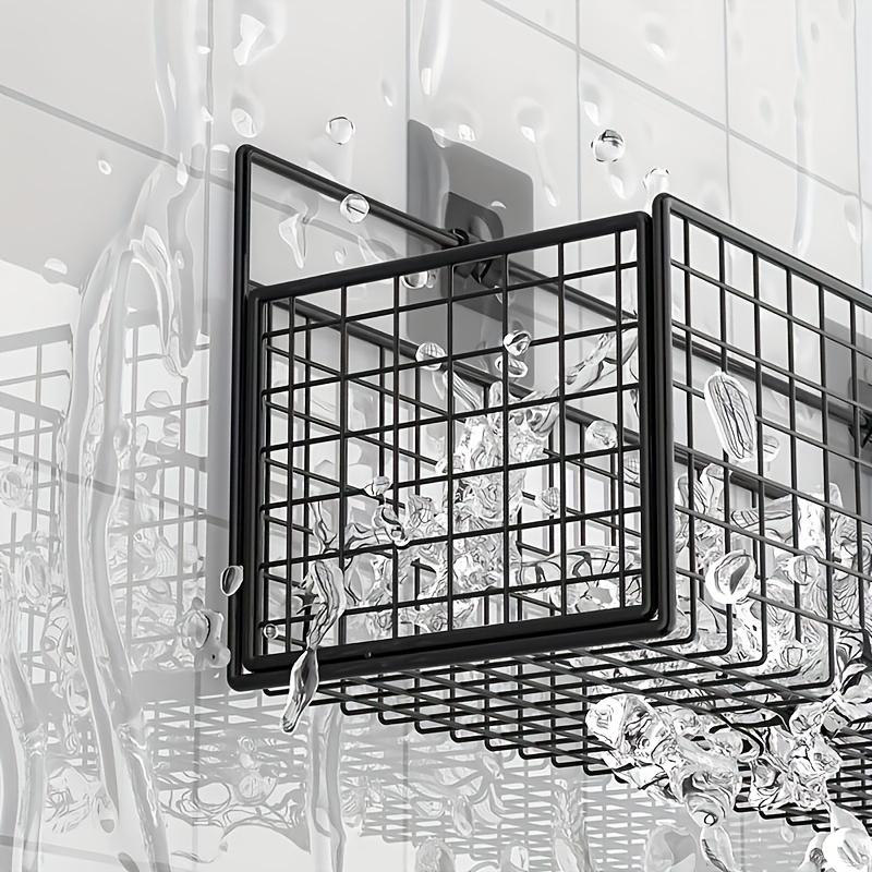 TEMU 벽걸이형 드릴 불필요 메탈 수납 바구니 - 통풍 디자인의 소박한 스타일 욕실 정리함, 튼튼한 메탈 화장대 랙, 안전하고 건강함, 간편한 설치, 욕실 수납 솔루션.