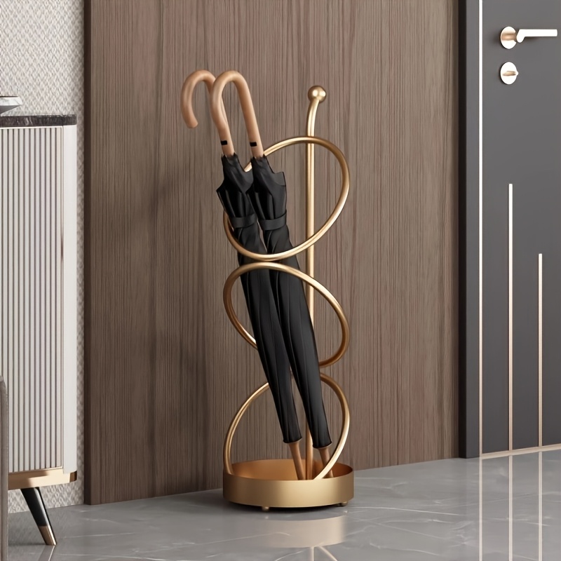 TEMU 금색 악센트가 있는 고급 금속 우산 거치대 - 대용량, 내구성 및 스타일리시한 가정 또는 상업용, 현관 수납 선반, 현대적인 디자인, 매끄러운 메탈릭 마감, 견고한 금속 구조