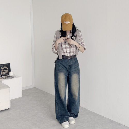 코키코키 / 핏보장/워싱포인트 캠퍼백 포켓 포인트 와이드 코튼 데님 팬츠