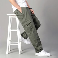 남자 카고바지 가을용 등산 일자 면바지 빅사이즈 밴딩 긴바지 tanlz-8816