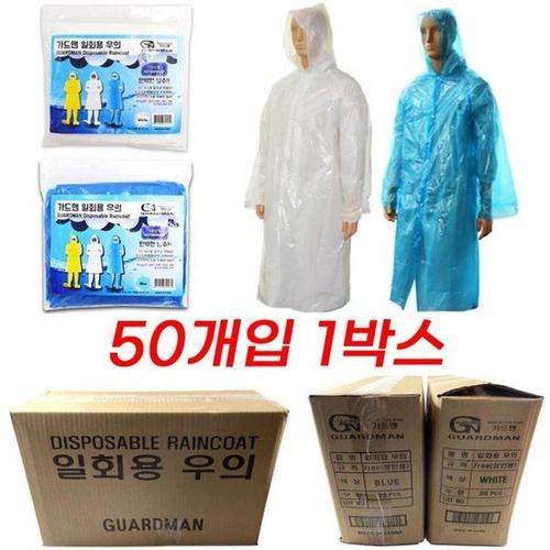[에이치플러스몰]가드맨 우비 1박스 우의 성인용 일회용 50개입 비옷