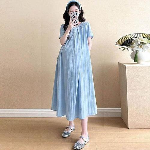[셀러허브_여성트랜드패션]ONM 여성 임부 플리츠 원피스 여름 캐주얼 체형커버