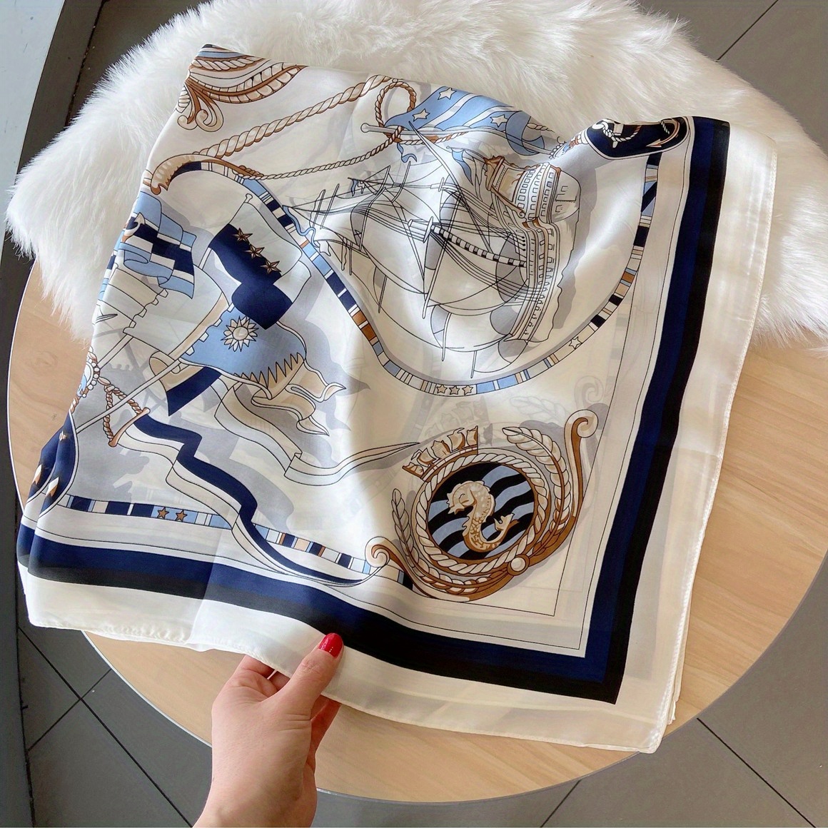 TEMU 스타일 폴리에스터 사각 스카프, 100% 폴리에스터, 90G/M², 스트레치되지 않음, 손세탁 가능, 장식용 및 햇빛 차단 해변용 스카프, 바람에 방지되는 패션 액세서리