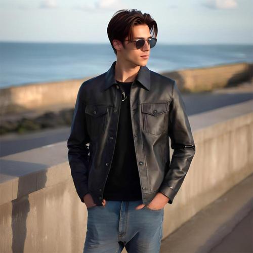 [이카룩]ITALY 투포켓 버튼 가죽 점퍼 CLJP109