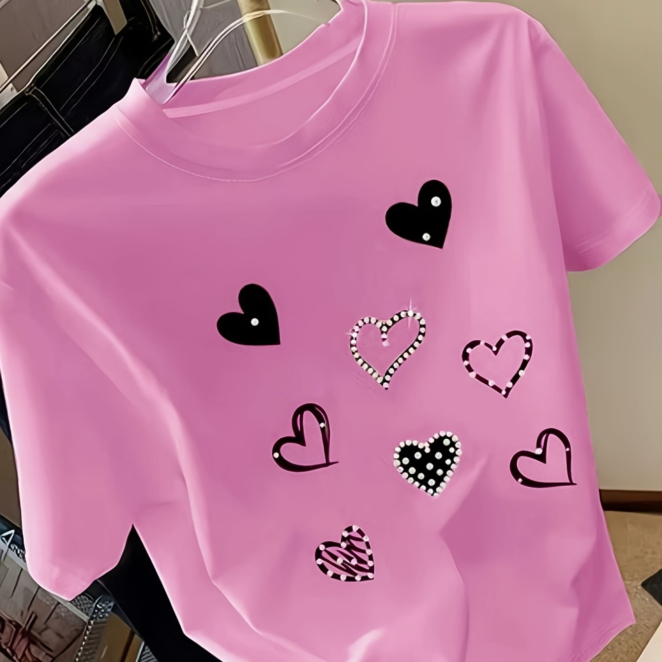 TEMU 여성용 캐주얼 핫 패턴 티셔츠 기하학적 그래픽 크루넥 - 부드러운 기계 세탁 가능 여름 티 EU 사이즈