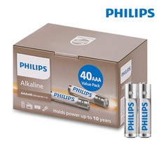 필립스 알카라인 AAA 대용량 건전지, 1개, 40개입