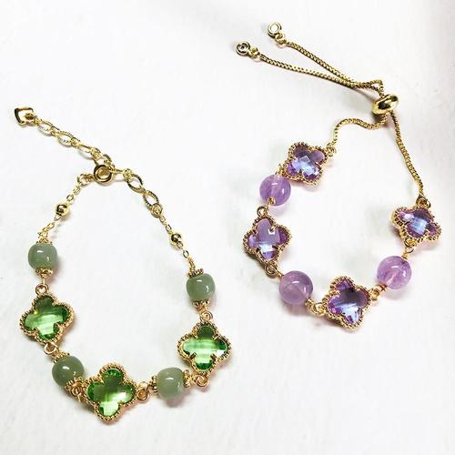 H7H13 화전옥 자수정 네잎클로버 행운팔찌 컬렉션