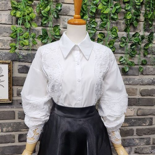 [KiiiKiii 착용] 빅카라 레이스자수 블라우스_T256MBL169W