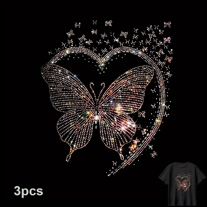 TEMU 3개 세트, 티셔츠 프린트 스티커 고화질 3D 나비 사랑 패턴 패션 열전달 데칼 백팩 베개 바지용 비닐 소재 고품질 자외선 차단 이미지 전용