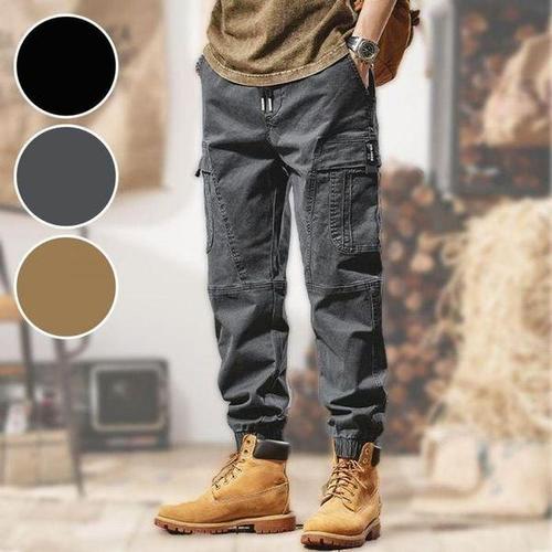 S-4XL 빅사이즈 밴딩 스판 카고바지 남성 여름 면 작업복 바지 건빵 밴드 봄 여름 가을 겨울 포켓 면