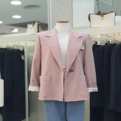[베스띠벨리]베스띠벨리 잔체크 배색 원버튼 셋업 자켓 H