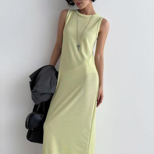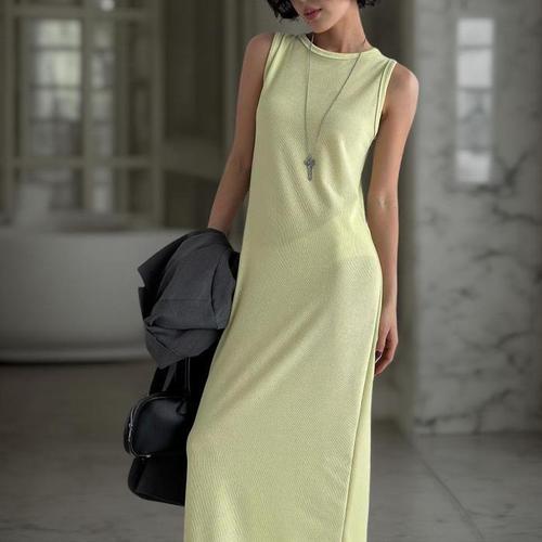 [에이치플러스몰]적은 구김 추천 민소매 롱원피스 꾸안꾸 A라인핏 뒷 U