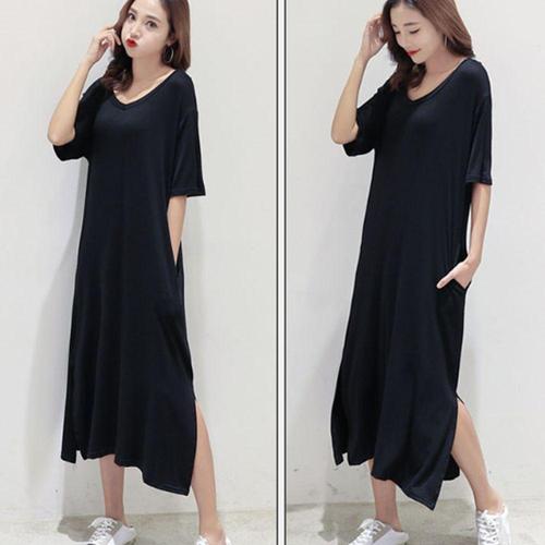 오버핏 여성 롱원피스 잠옷 반팔 면 루즈핏 원피스 WFLSRJU