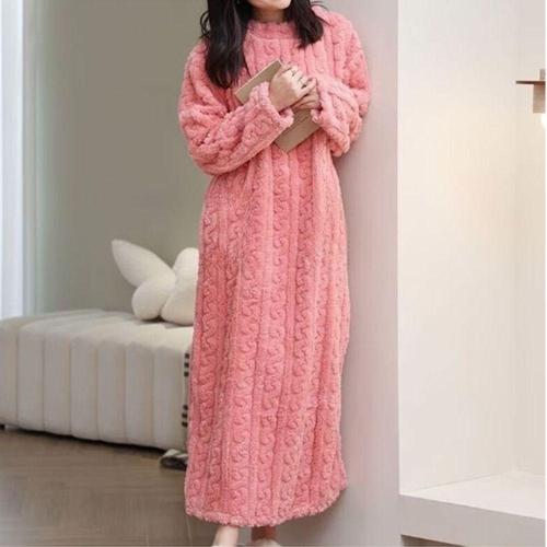루즈핏 긴팔 롱원피스 포근한 극세사 잠옷 원피스 WFMRL0M