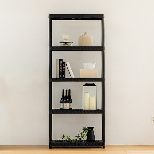 보네드 크라운 L 블랙 5단 와이드 틈새 라탄 플라스틱 창고 베란다 세탁실 거실 다용도실 수납장 선반