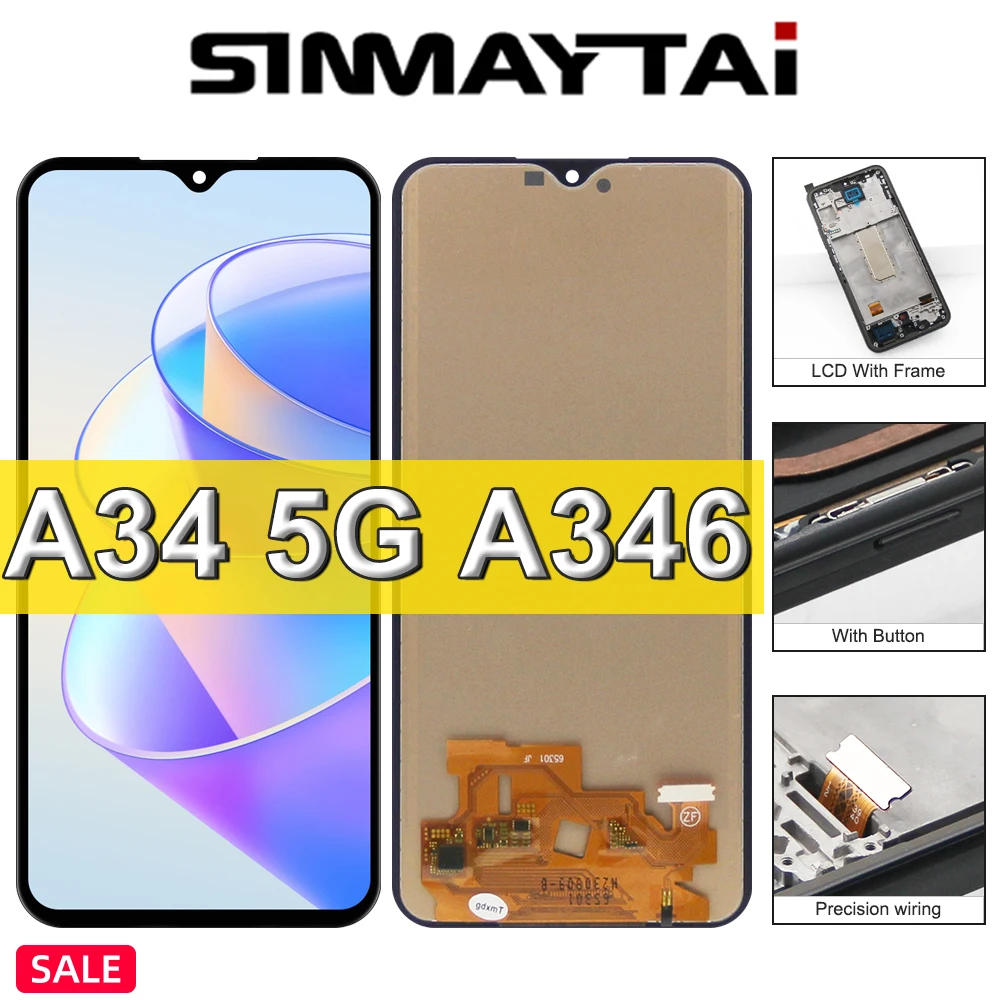삼성 갤럭시 A34 5G SM-A346E A346B LCD 디스플레이 터치 스크린 디지타이저용 A34 디스플레이, 삼성 A34 스크린 교체용