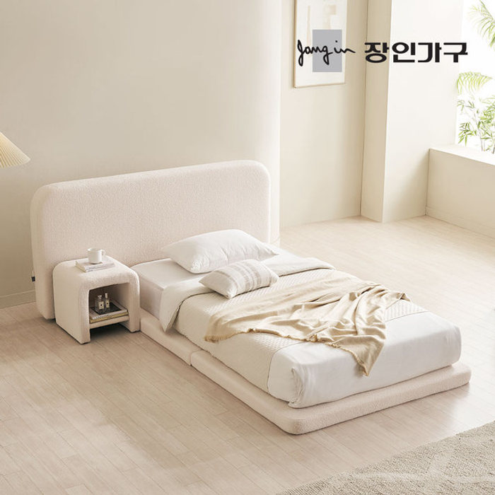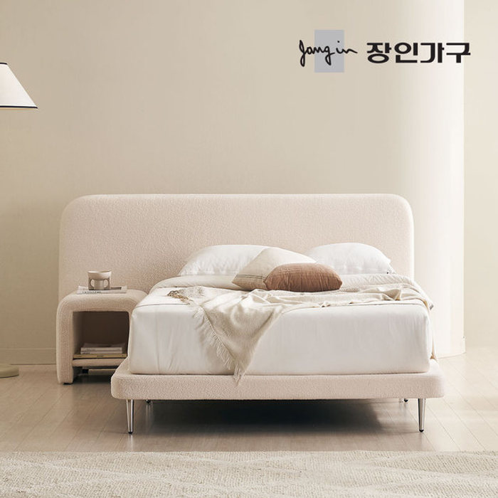 장인가구 [비밀특가] 장인가구 도우 와이드헤드형 부클레 패브릭 저상형 침대 SS+협탁1+본넬