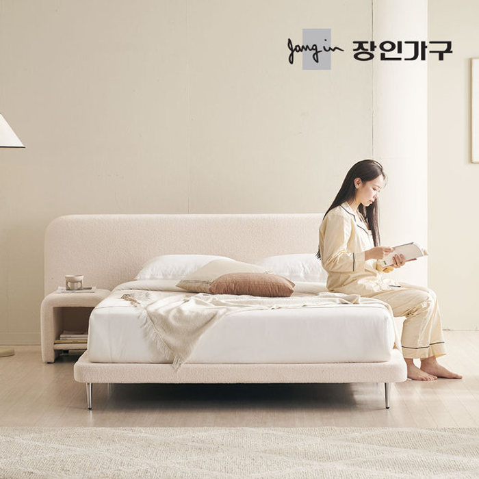 장인가구 [비밀특가] 장인가구 도우 와이드헤드형 부클레 패브릭 저상형 침대 Q+본넬