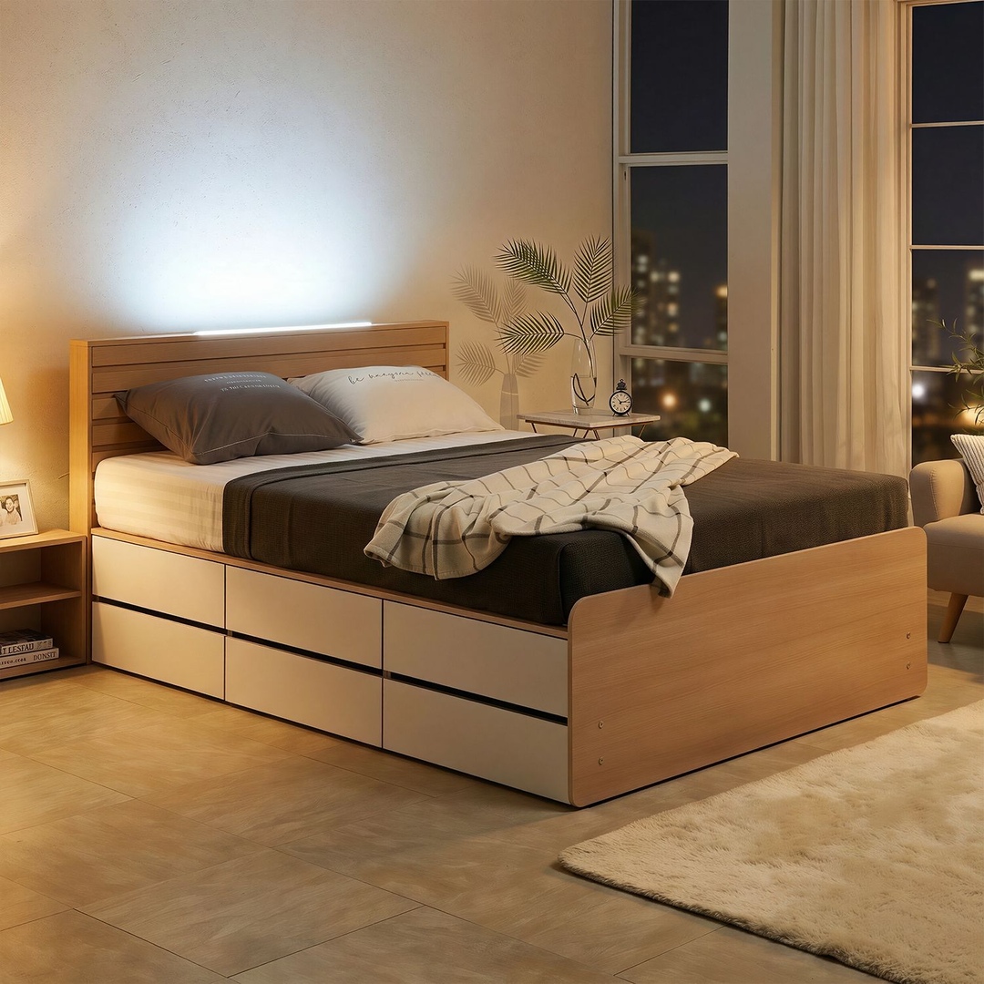 하모니 침대프레임 LED 수납형 2단 서랍 침대 중학생 저상 Q(퀸)