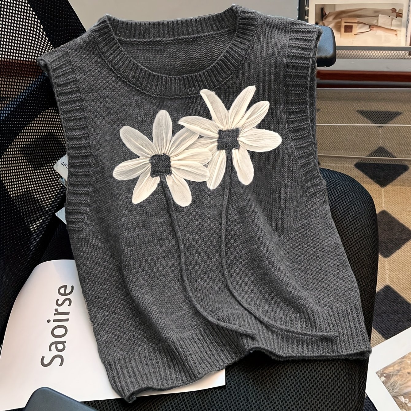 TEMU 우아한 여성용 민소매 조끼, 3D 플로럴 아플리케 | 크루넥, 레귤러 핏, 봄/여름/가을에 적합