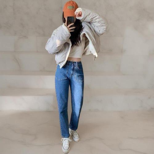 [옷자락]여성 하이웨이스트 포켓 디테일 청 스키니 팬츠