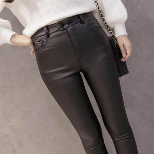 여성 라텍스 가짜 Pu 가죽 바지 바지는 높은 허리 스키니 바지 연필 가을 겨울 솔리드 컬러 섹시한 바지 여성을 밀어