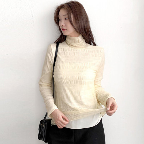 옷자락 / 여자 레이스 셔링 폴라 융안감 겨울 이너 티셔츠