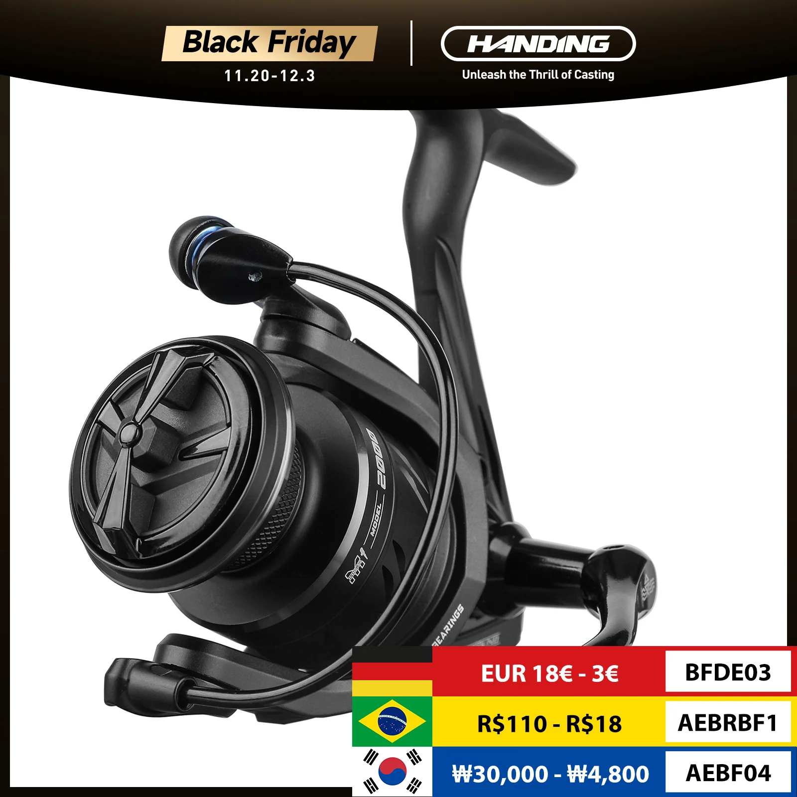 HANDING M1 스피닝 릴 12kg 최대 드래그 흑연 릴, 9 + 1 볼 베어링, 5.2:1 기어비 퍼치 베이스 및 파이크용 낚시 릴