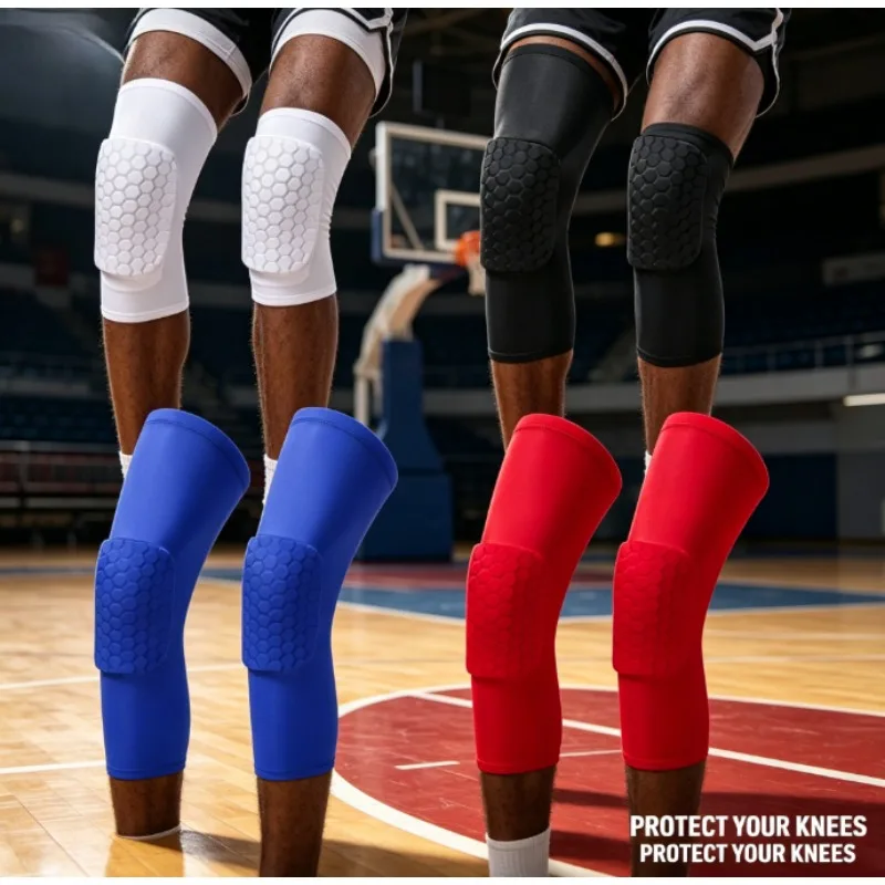 남녀공용 스포츠 무릎 보호대, 두꺼운 허니콤 쿠션, 미끄럼 방지 및 땀 흡수 기능, 운동, 크로스핏, 사이클링, 스케이트보드용