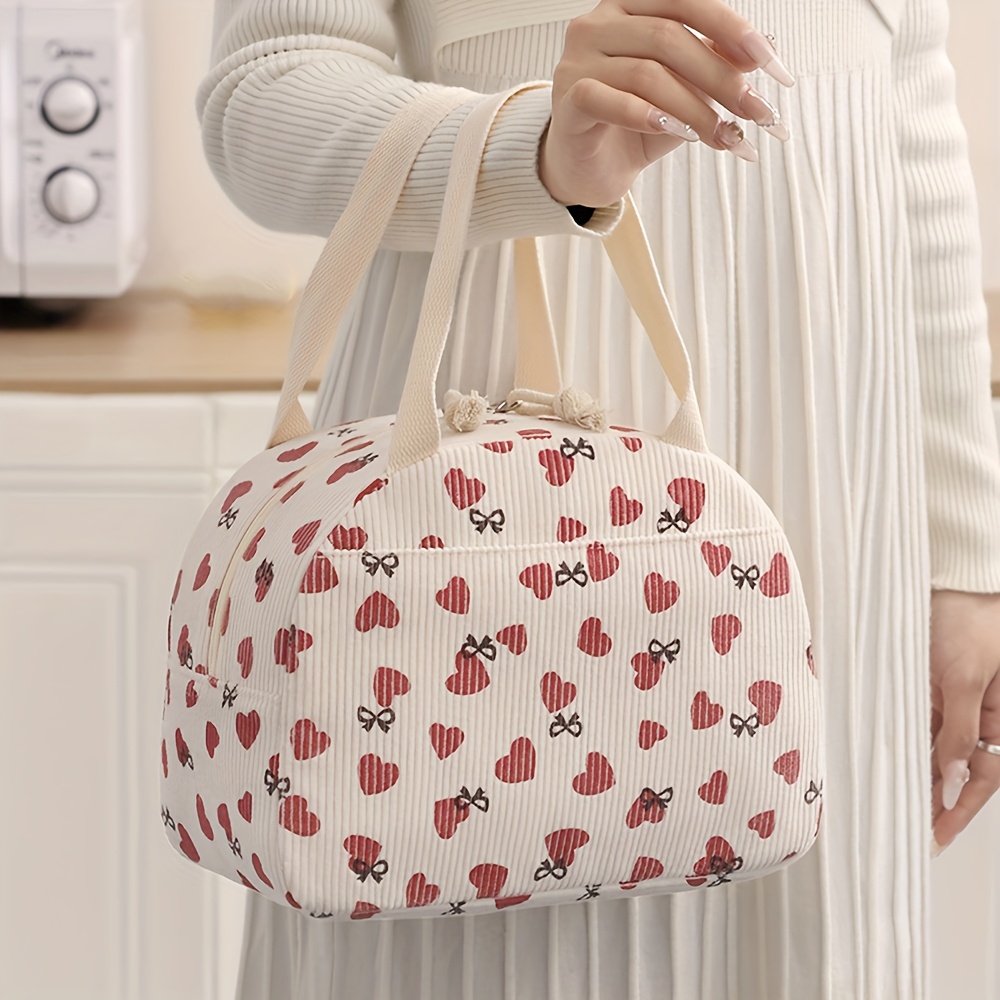 TEMU 대용량 코듀로이 하트 모양 토트백, 휴대용 작업 핸드백 (야외 피크닉, 캠핑, 여행용), 비식품 접촉 단열 도시락 가방