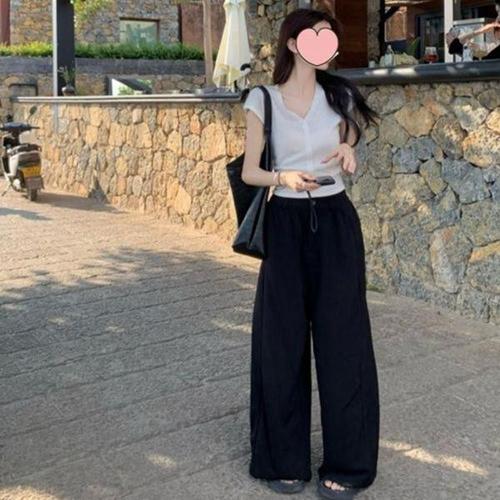 [에이치플러스몰]절개 면접 여성슬랙스 와이드 스판청바지 슬랙스