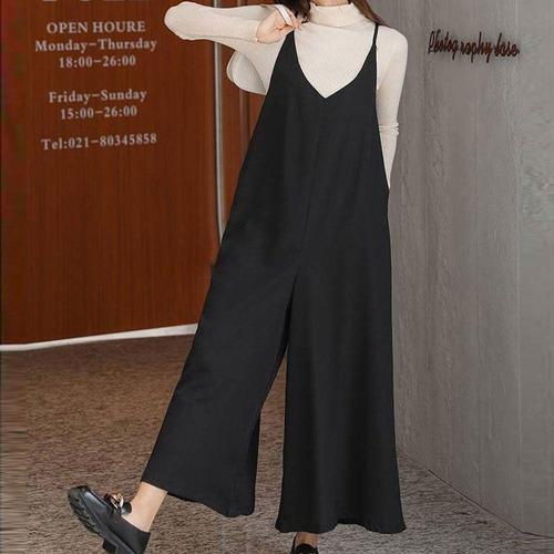 민소매 나시 와이드 점프수트 롱 멜빵바지 여성 여름 kzX9+7Xri