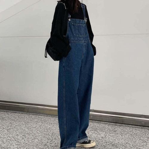 데님 멜빵 긴바지 청바지 통바지 루즈핏 멜빵바지 팬츠 와이드 여자 여성 점프수트 진청