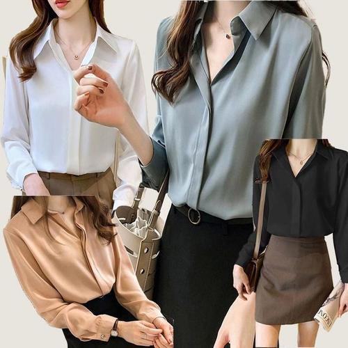 여성 광택감있는 카라 블라우스 정장셔츠 오피스룩 3색